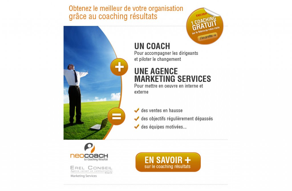 Newsletter pour une offre de coaching de résultat, proposée par NeoCoach et Erel Conseil.