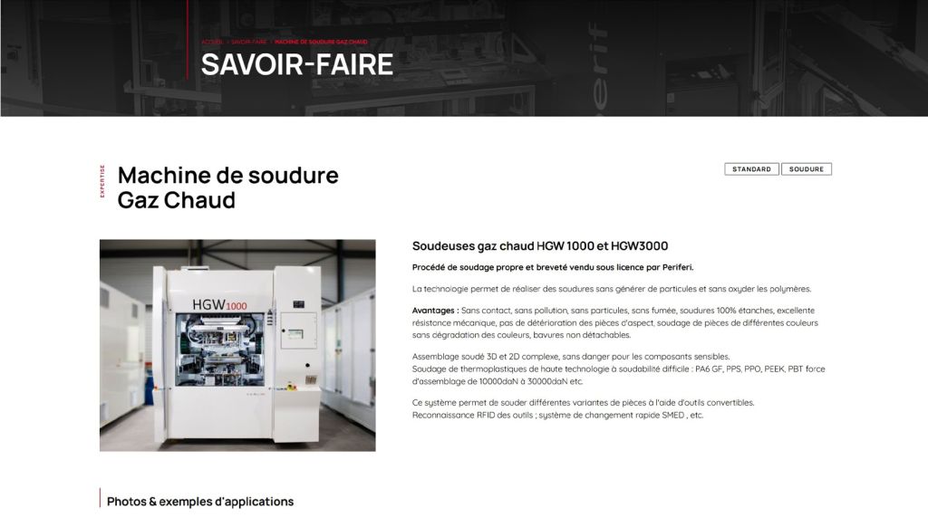 Le site vitrine, multilingue, permet la présentation de l'entreprise, ses services et de ses machines et solutions.
